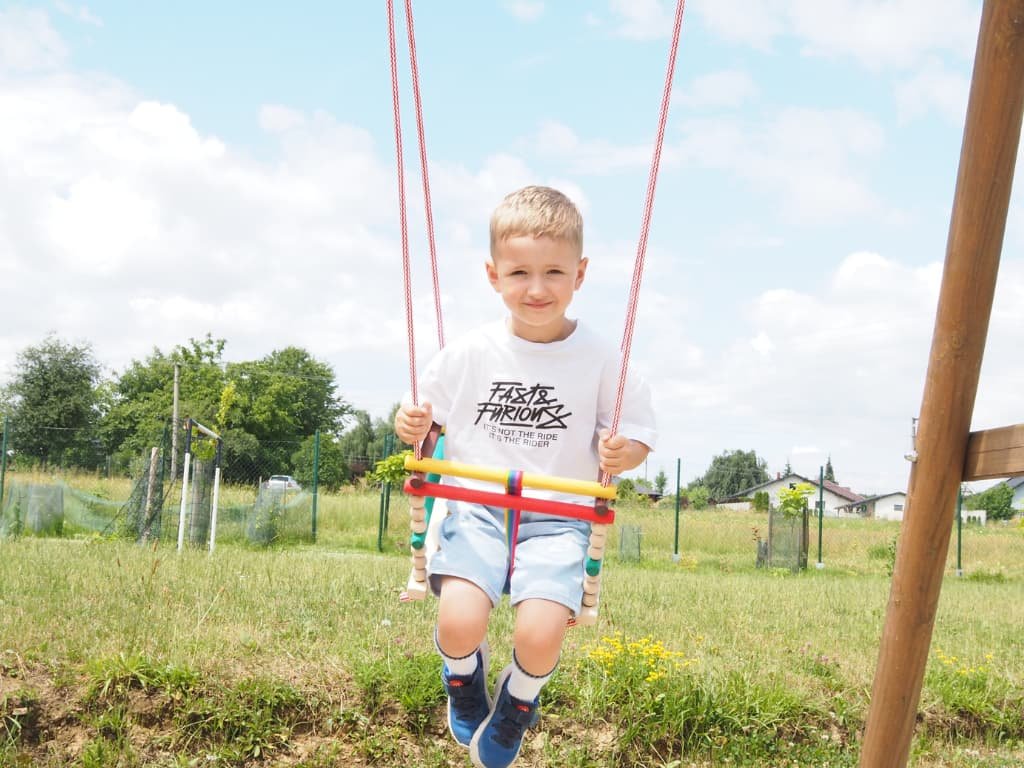Die Kinderschaukel aus Buchenholz sorgt für leuchtende Kinderaugen und die Eltern haben genügend Zeit, ihren Nachmittagskaffee zu trinken. Jedes Kind liebt es zu schaukeln!