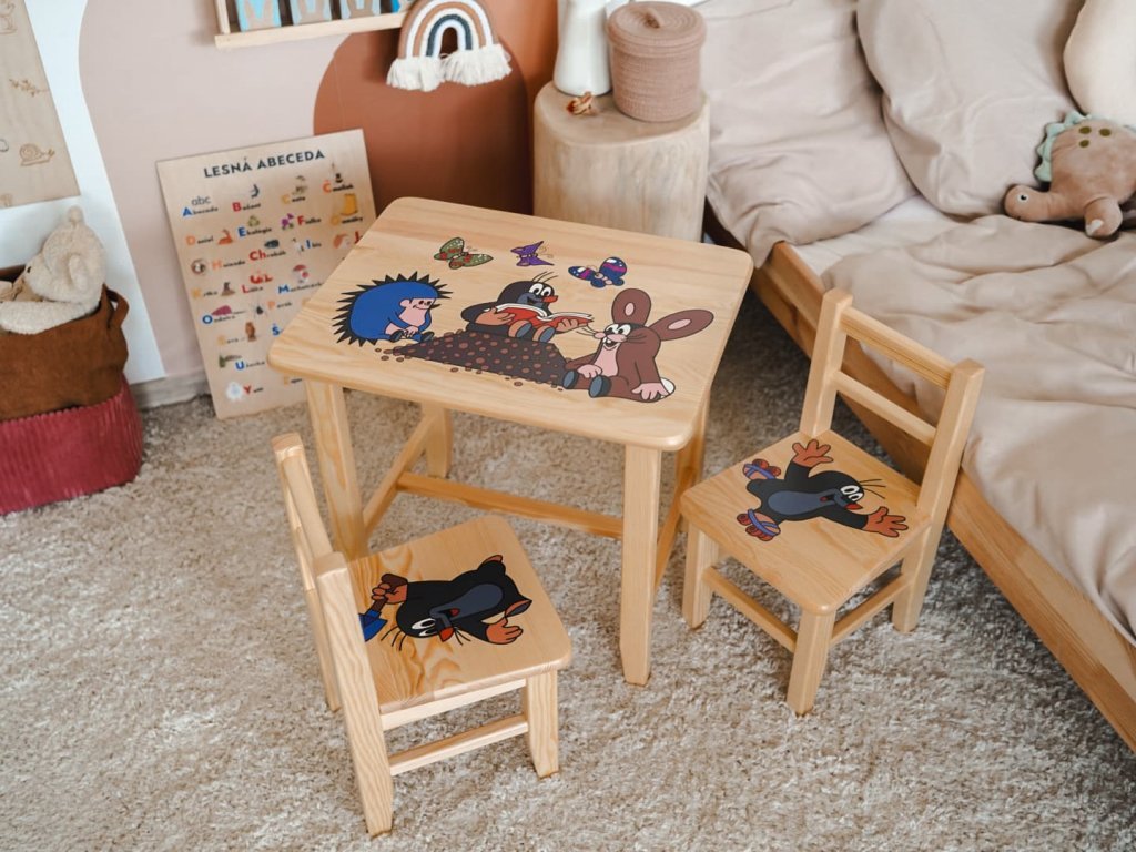 Kindertisch aus Holz mit Stühlen – Der kleine Maulwurf