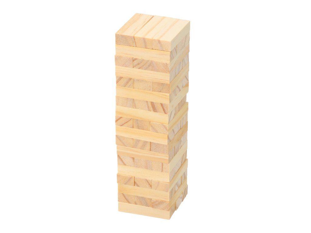 Auf dem Tisch wird aus allen Würfeln ein Turm gebaut. Die Spieler versuchen abwechselnd, vorsichtig einen Stein nach dem anderen aus dem Turm zu ziehen, ohne dass er einstürzt. Der letzte Spieler, der einen Würfel aus dem Turm entfernt und ihn wieder oben auf den Turm legt, bevor er einstürzt, gewinnt!