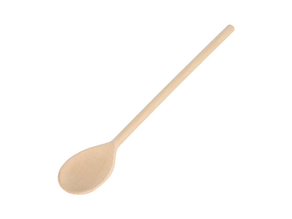 Praktischer Kochlöffel aus einem Stück Qualitätsbuchenholz. In kochendem Wasser verziehen sich unsere Kochlöffel nicht und bekommen keine Risse.