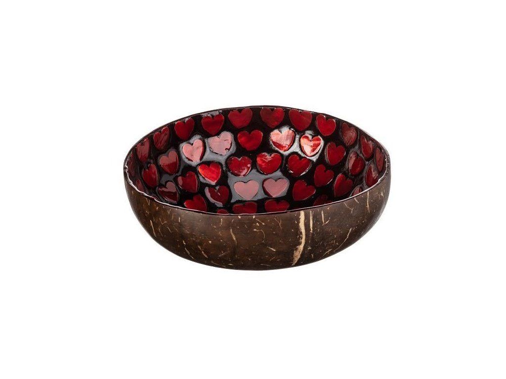 Kokosnussschale mit roten Herzen