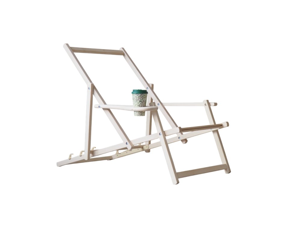 Konstruktion der Gartenliege aus Holz mit Getränkehalter