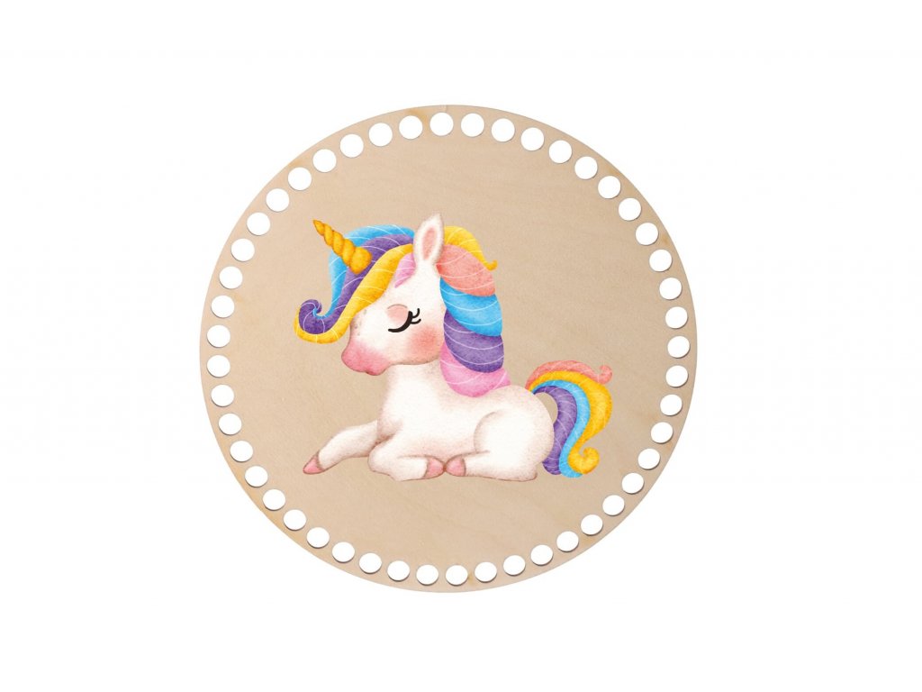 Den runden Holzkorbdeckel mit Einhornmotiv fertigen wir aus 3 mm starkem Birkensperrholz. Es eignet sich zur Herstellung von gehäkelten Körben aus Zwirnen. Wir bieten verschiedene Größen an.
