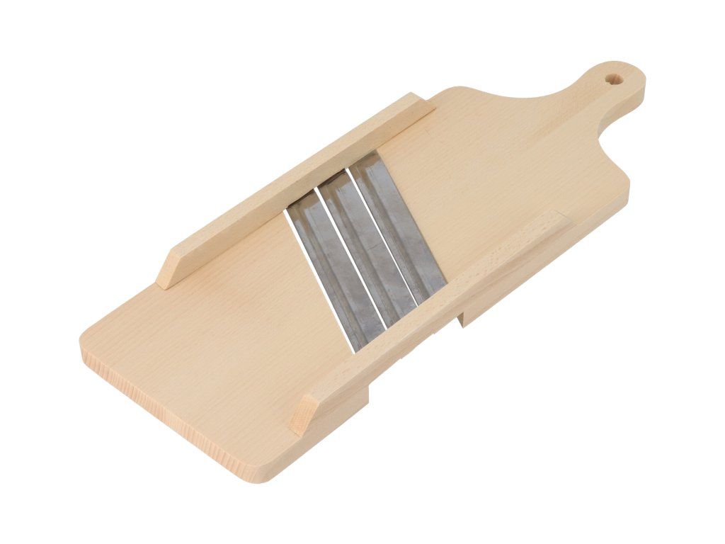 Der hölzerne Krauthobel ist ein unschätzbares Werkzeug für die Zubereitung von Sauerkraut oder anderem Gemüse. Mit den 3 scharfen Klingen ist die Arbeit in wenigen Minuten erledigt.