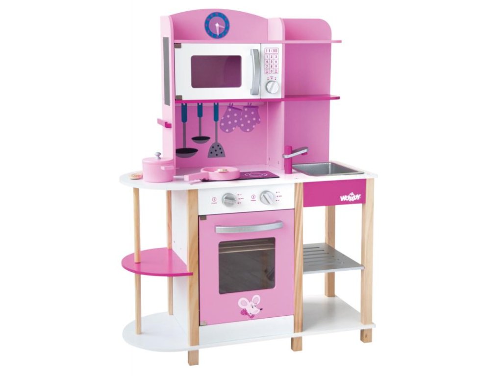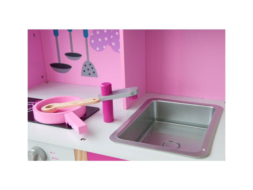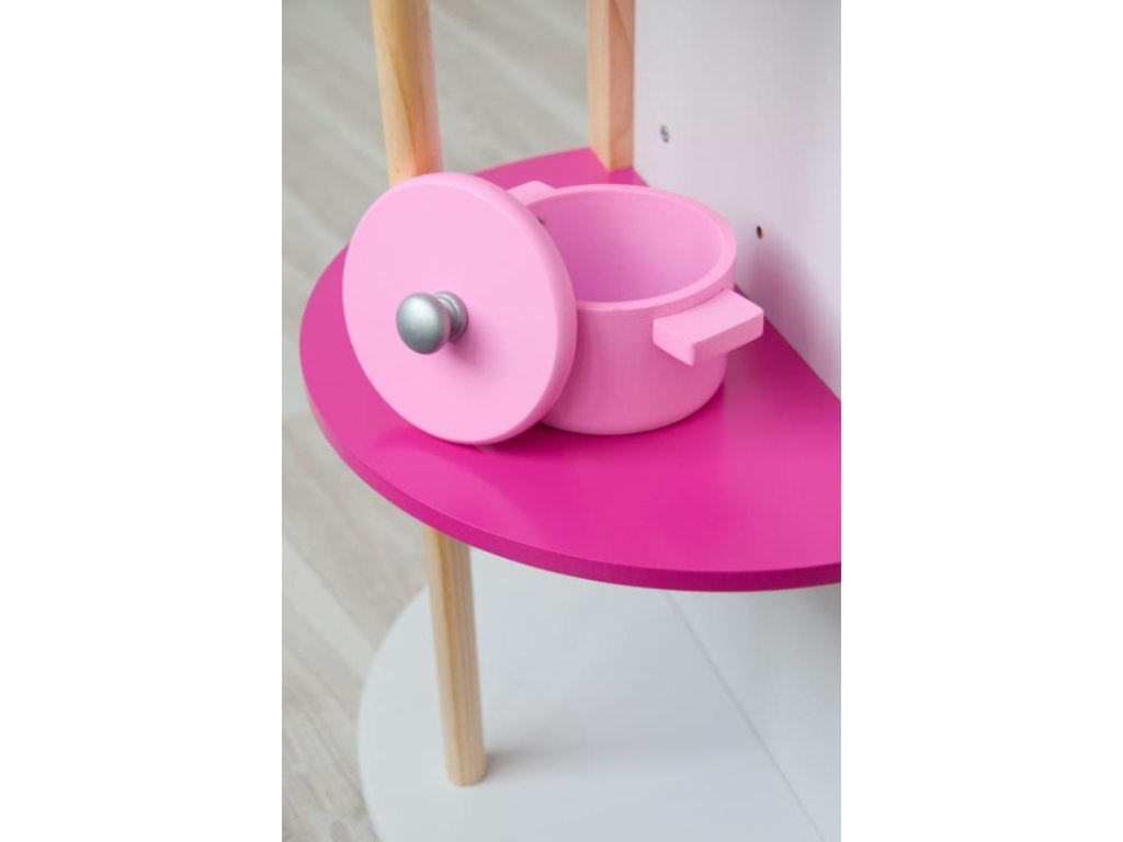 Die rosa Kücheninsel ist ein schönes Geschenk für alle Mädchen, die gerne mit ihrer Mutter in der Küche spielen.