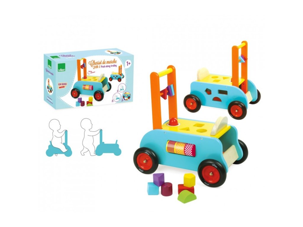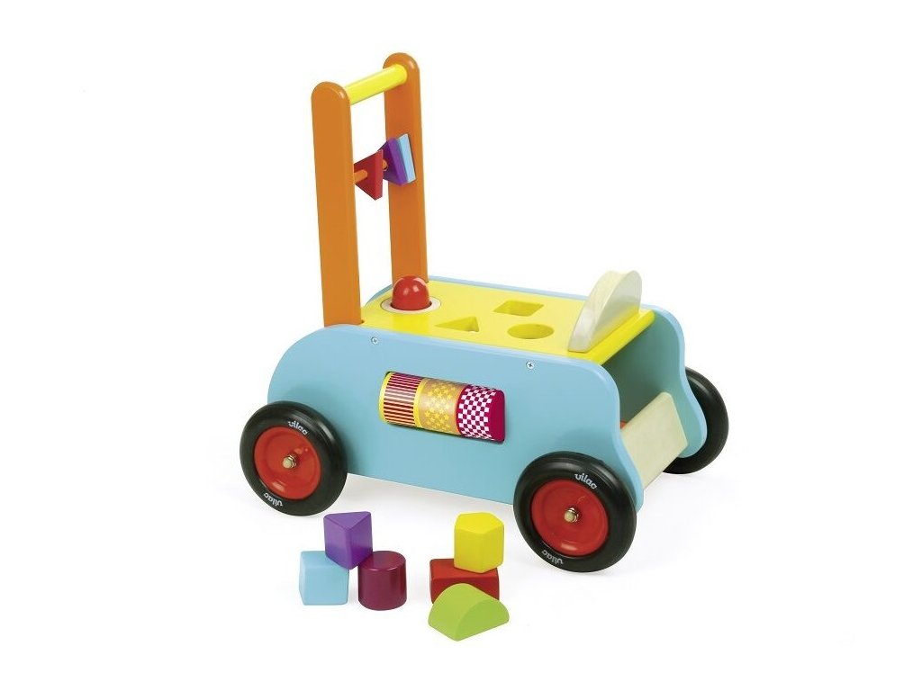 Der Lauflernwagen aus Holz ist sehr vielseitig. Man kann darauf sitzen, sich abstoßen oder ihn vor sich herschieben. Am Anfang hilft dieser Lauflernwagen den Kindern, ihr Gehen besser zu koordinieren. Der Lauflernwagen fördert die motorischen Fähigkeiten der Kinder, ihre Sinne und lehrt sie, Farben und Formen zu erkennen.