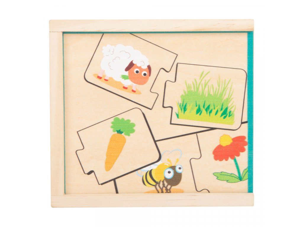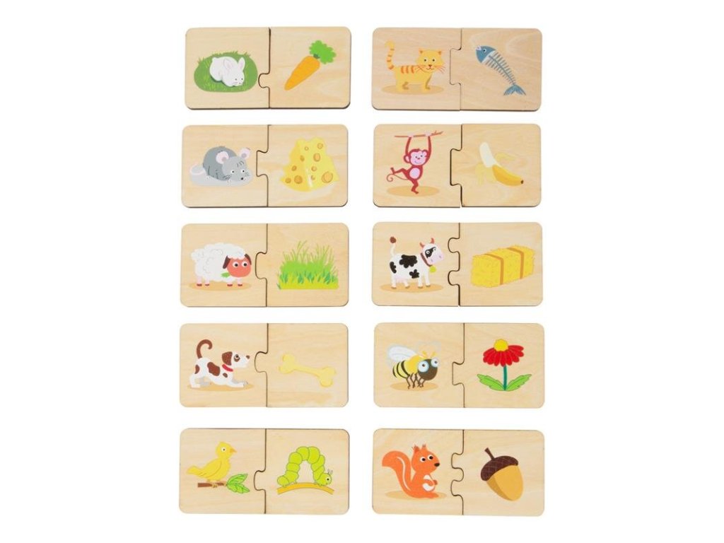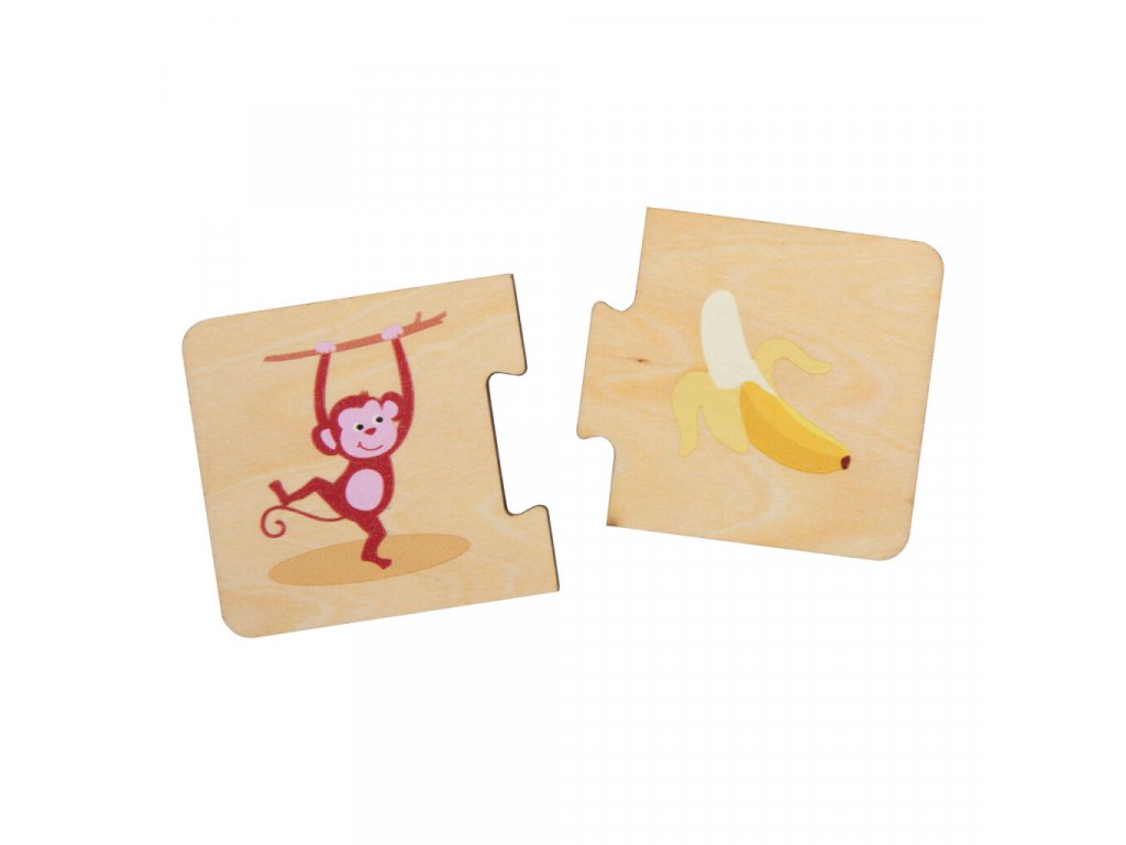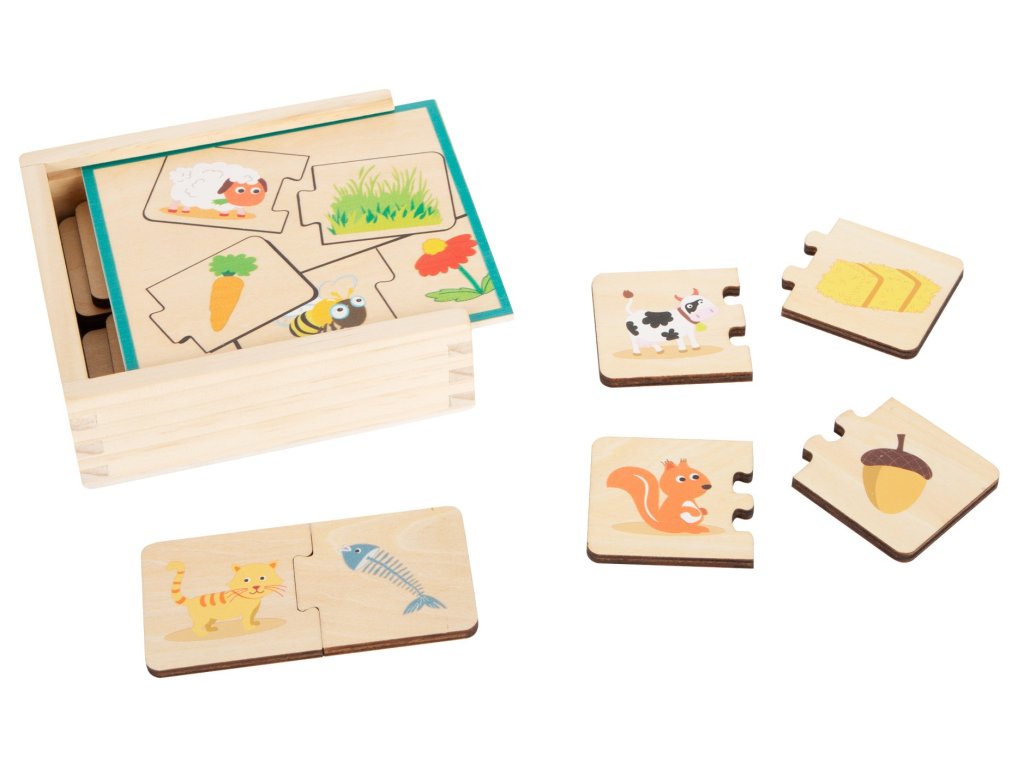 Holzpuzzles helfen Kindern die Geduld und Feinmotorik zu trainieren. Ziel des Spiels ist es, die Tiere ihrem Futter zuzuordnen, die Spielsteine selbst erlauben es den Kindern nur, die richtigen Kombinationen zusammenzustellen.