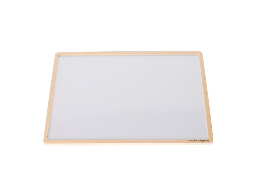 Die Tafel eignet sich zum Schreiben oder Zeichnen mit abwischbaren Markern.