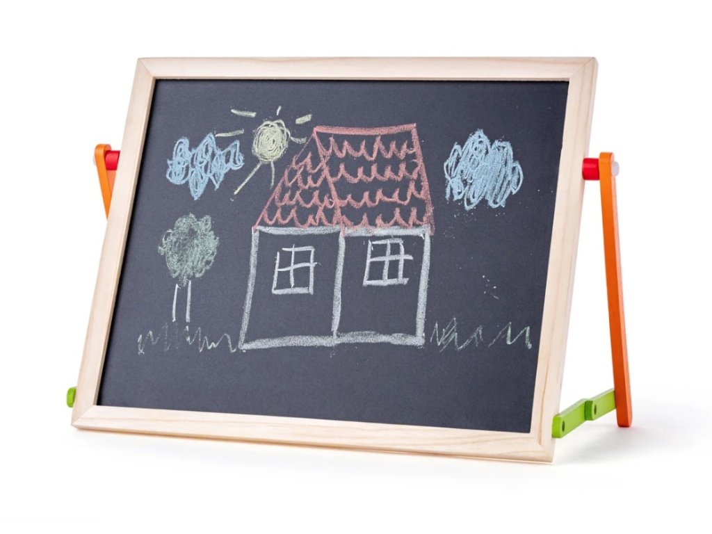 Ein schönes Spielzeug zur Erweiterung von Kenntnissen. Das Kind kann Wörter aus den Buchstaben an der Tafel bilden und Zahlen erkennen. Auf der anderen Seite befindet sich eine Fläche zum Zeichnen mit dem mitgelieferten Trockenlöschmarker, Auch ein Schwamm und farbige Kreiden sind im Lieferumfang enthalten.