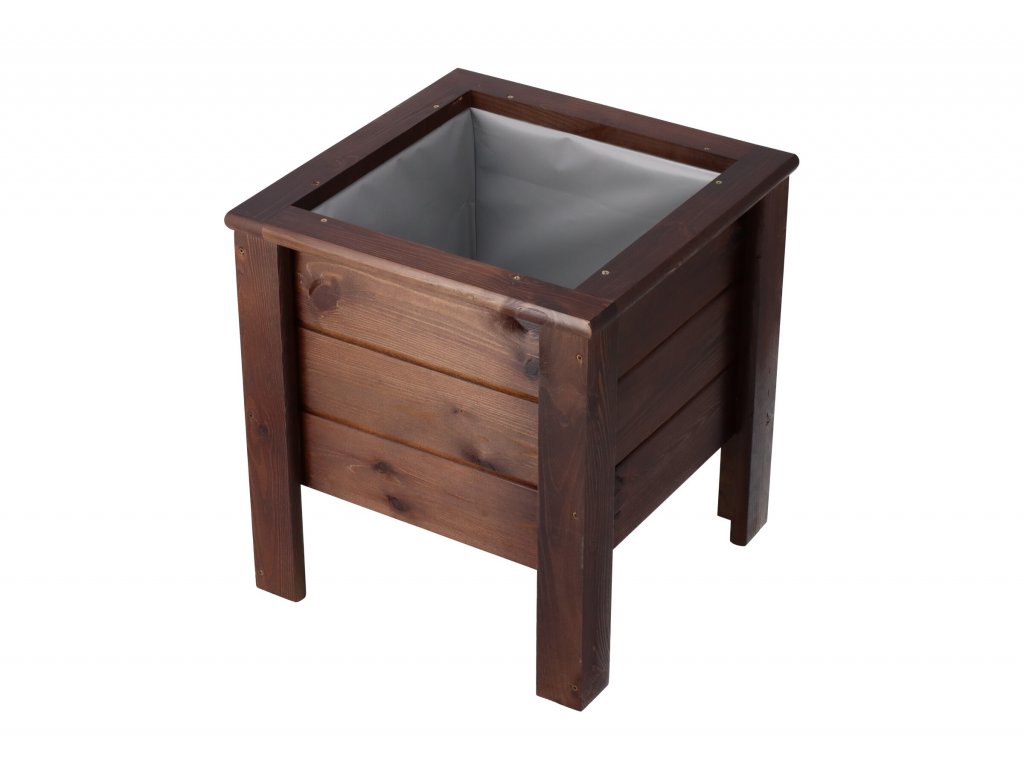 Massiver Blumentopf aus Holz 38 cm dunkel