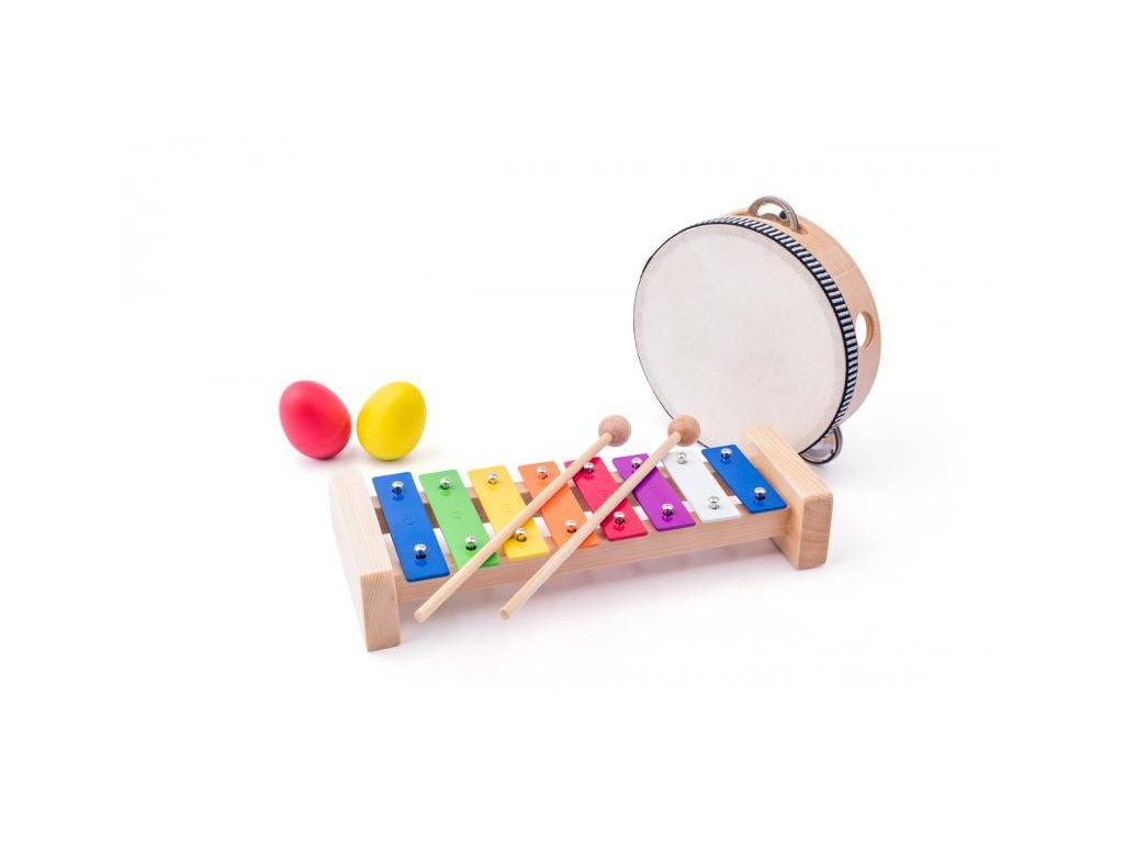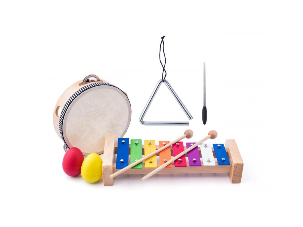 Dieses farbenprächtige Instrumentarium wird Kinder und angehende Musiker begeistern. In dem Paket sind Instrumente wie ein Xylophon, ein Tamburin/eine Trommel, eine Triangel und 2 Maracas-Eier enthalten.