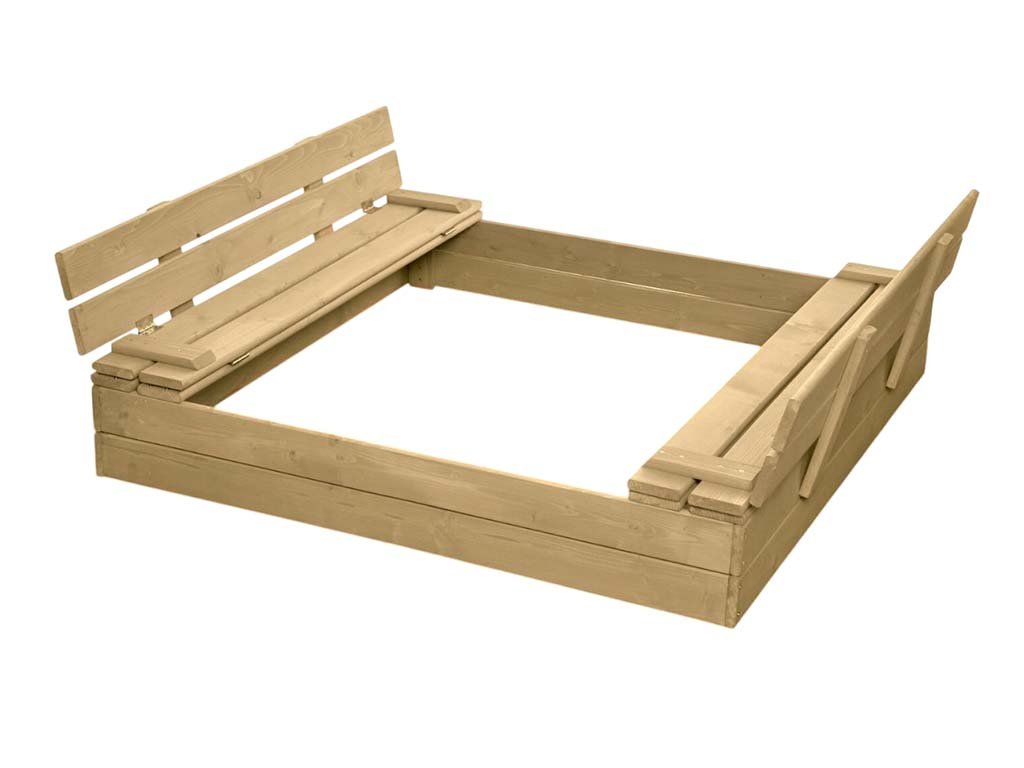 Natürlicher Holzsandkasten mit Sitzbänken 120 x 120 cm