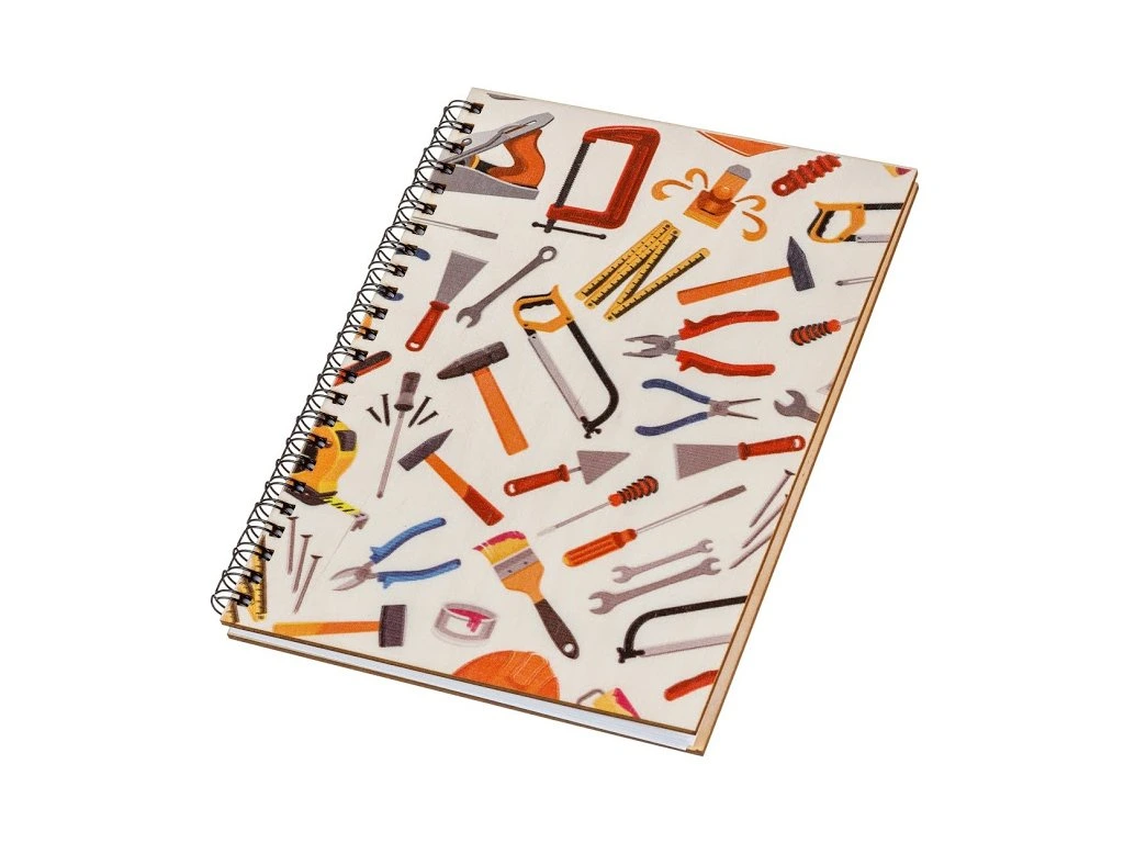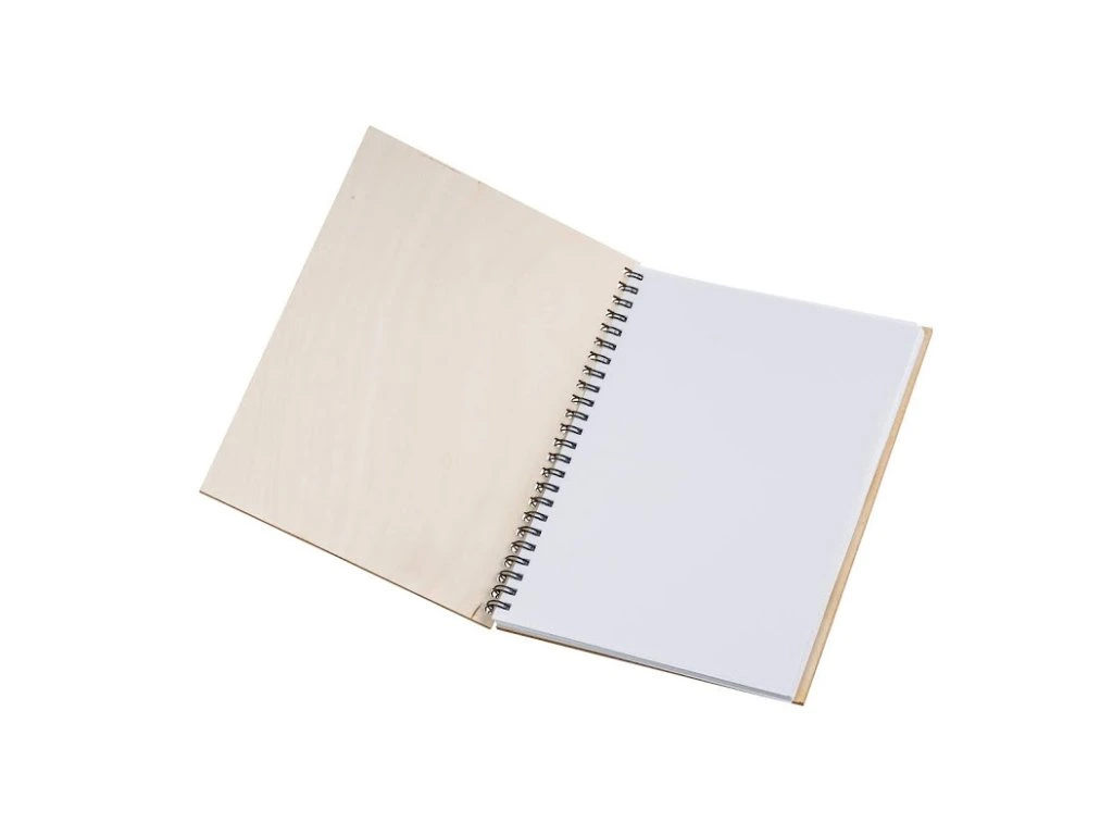 Das hölzerne Notizbuch kann in der Schule, zu Hause und im Büro genutzt werden. Die Seiten des Notizbuchs sind unliniert, so dass man darin zeichnen und schreiben kann.