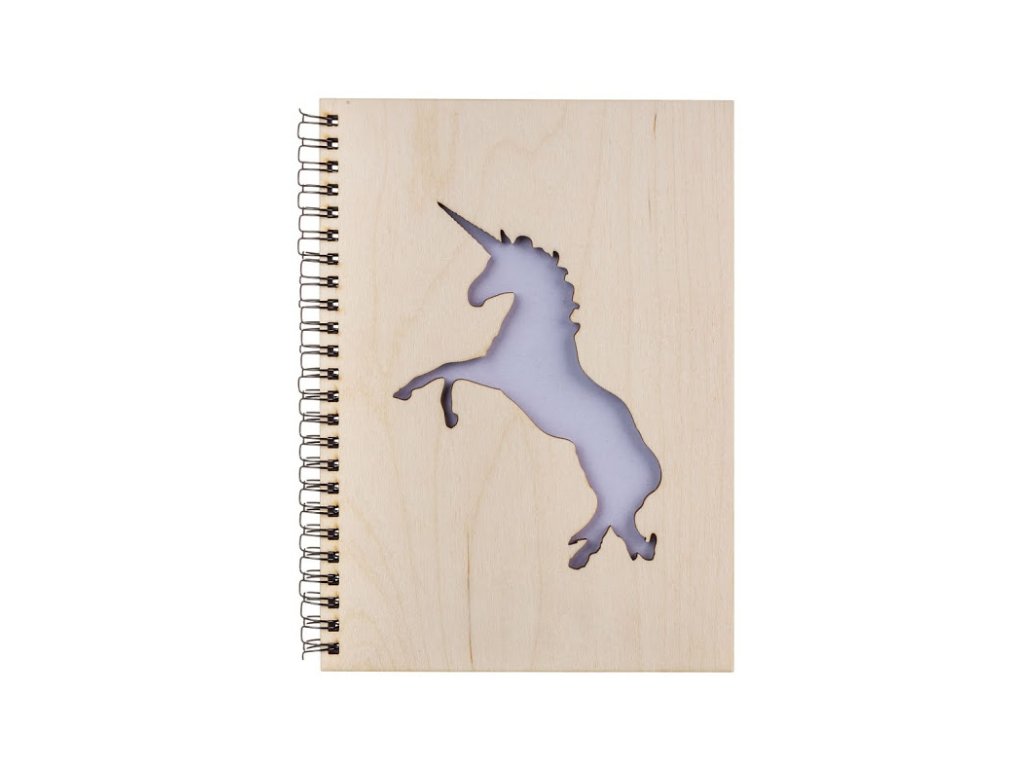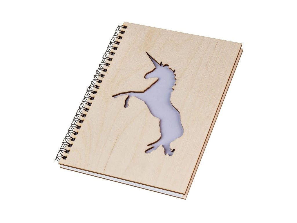 Notizbuch aus Holz A5 – Einhorn