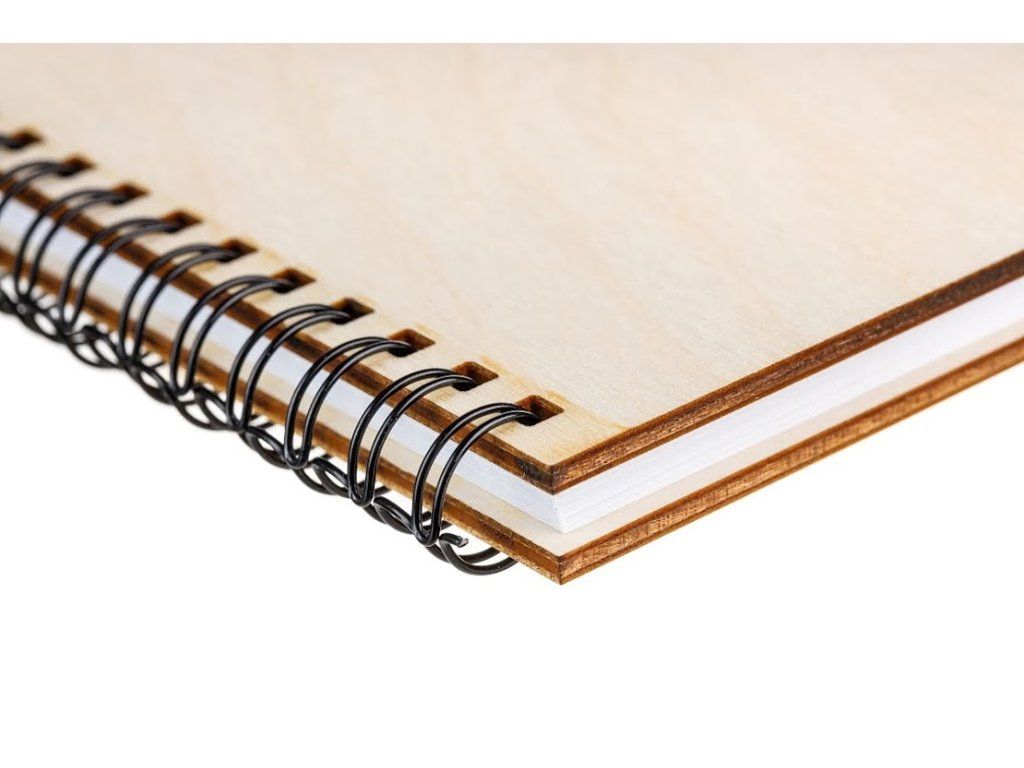 Das hölzerne Notizbuch kann in der Schule, zu Hause und im Büro genutzt werden. Die Seiten des Notizbuchs sind unliniert, so dass man darin zeichnen und schreiben kann.