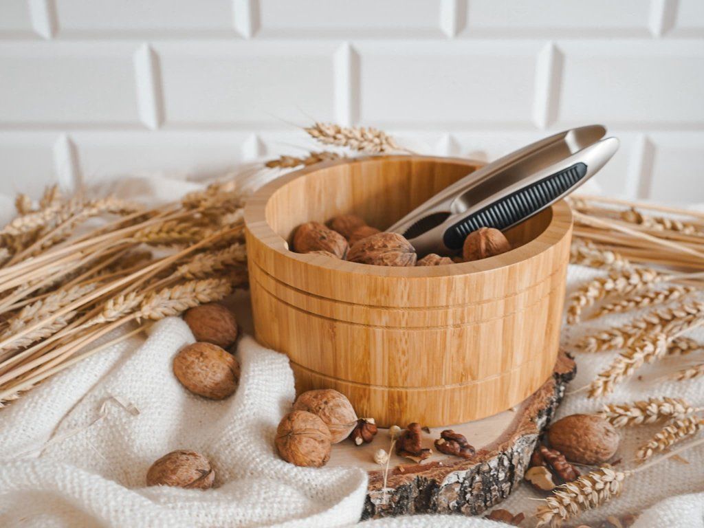 Knacken Sie Nüsse einfach und stilvoll mit diesem praktischen Nussknacker aus Bambus.