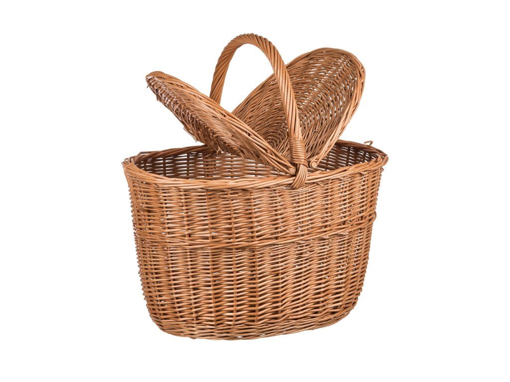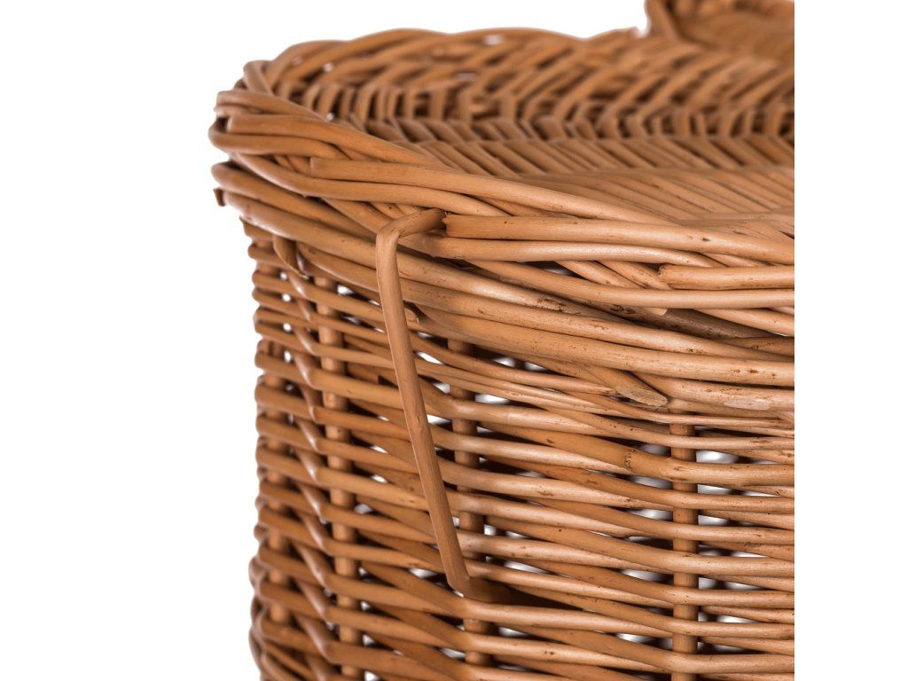 Der Korb hat einen praktischen Deckel, so dass auch die vernaschte Nachbarskatze nicht in den Korb gelangen kann. Er ist aus Weidenruten gefertigt und hat eine Höhe von 26 cm ohne Henkel.