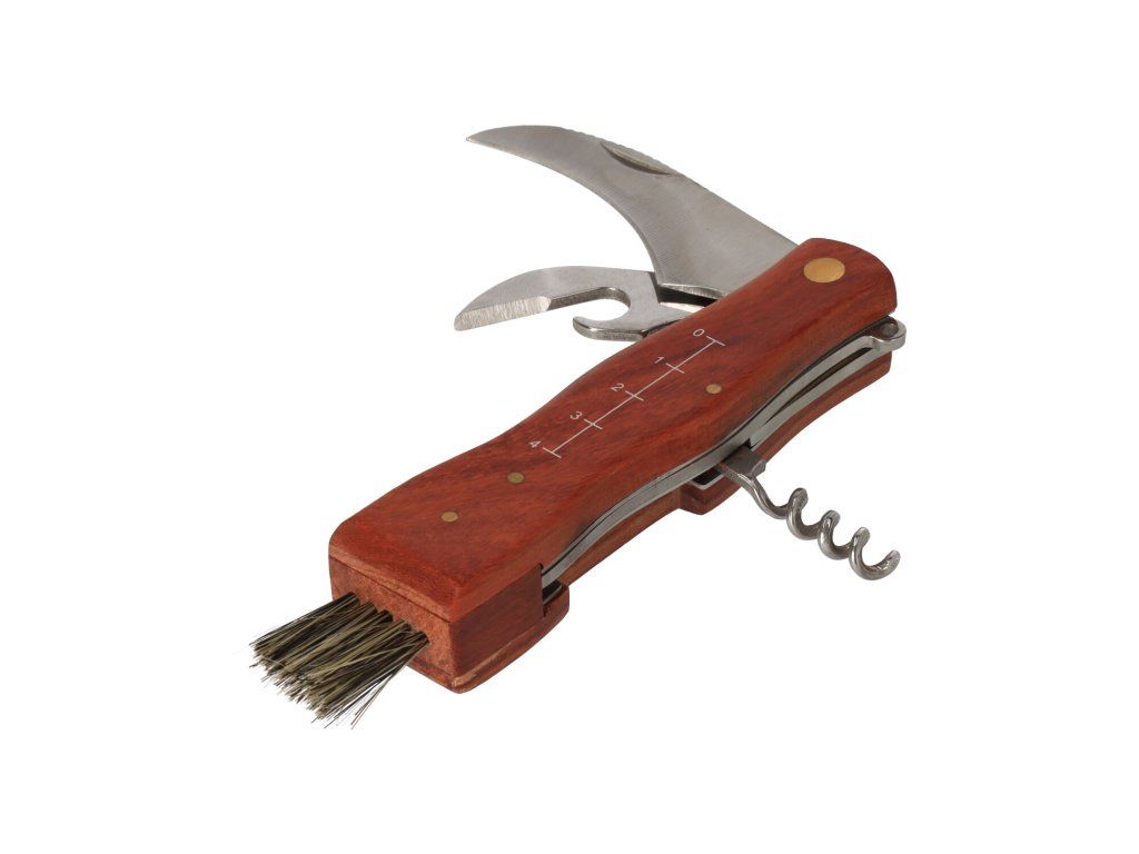 Das Messer enthält Öffner für Kronkorken und klassische Korken.