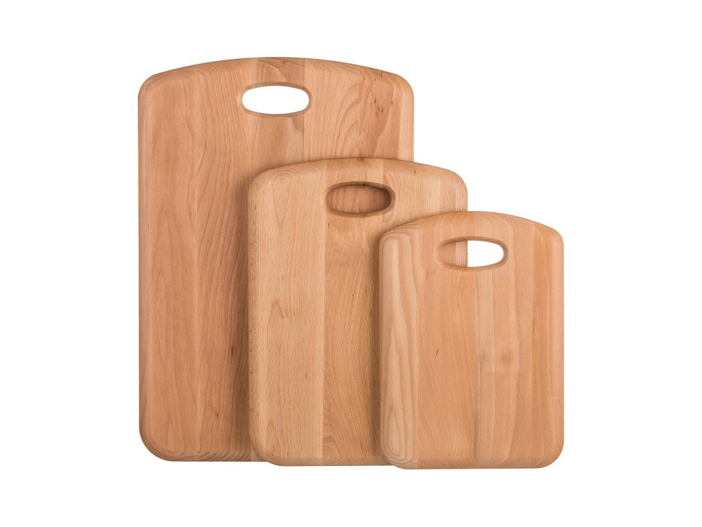 Das Set aus drei Schneidebrettern aus Buchenholz wird zu einem großen Helfer in Ihrer Küche. Jedes Schneidebrett hat eine andere Größe und ist mit Naturöl behandelt.
