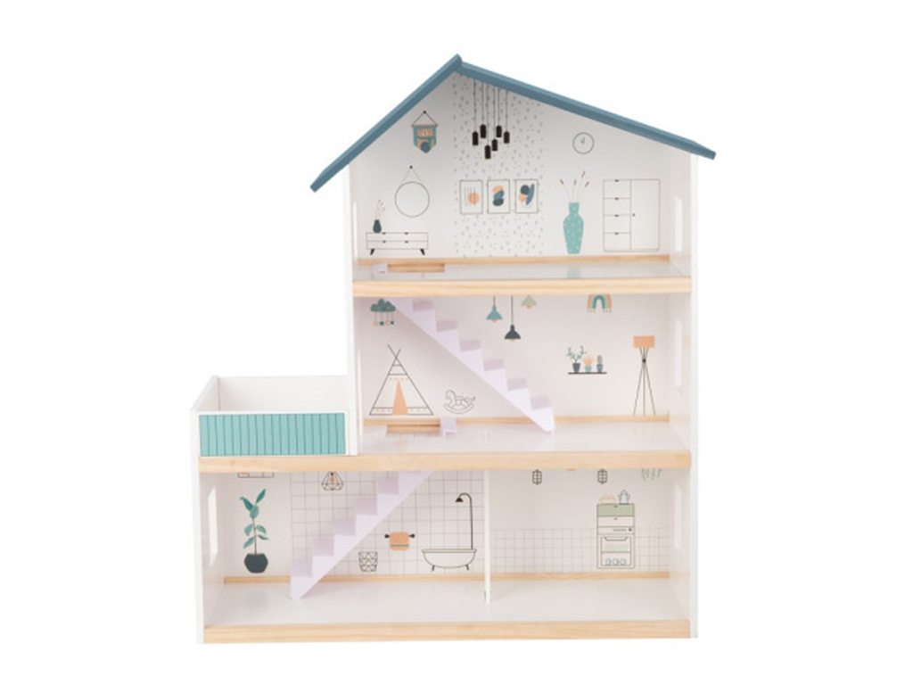 Erschaffen Sie gemeinsam mit Ihren Kindern eine Welt voller Geschichten und Abenteuer. Das geräumige Holzpuppenhaus bietet mehrere Etagen und Zimmer, in denen Kinder den Familienalltag nachspielen und ihrer Fantasie freien Lauf lassen können. Dank der offenen Bauweise ist das Haus von allen Seiten gut zugänglich, sodass mehrere Kinder gleichzeitig bequem spielen können.