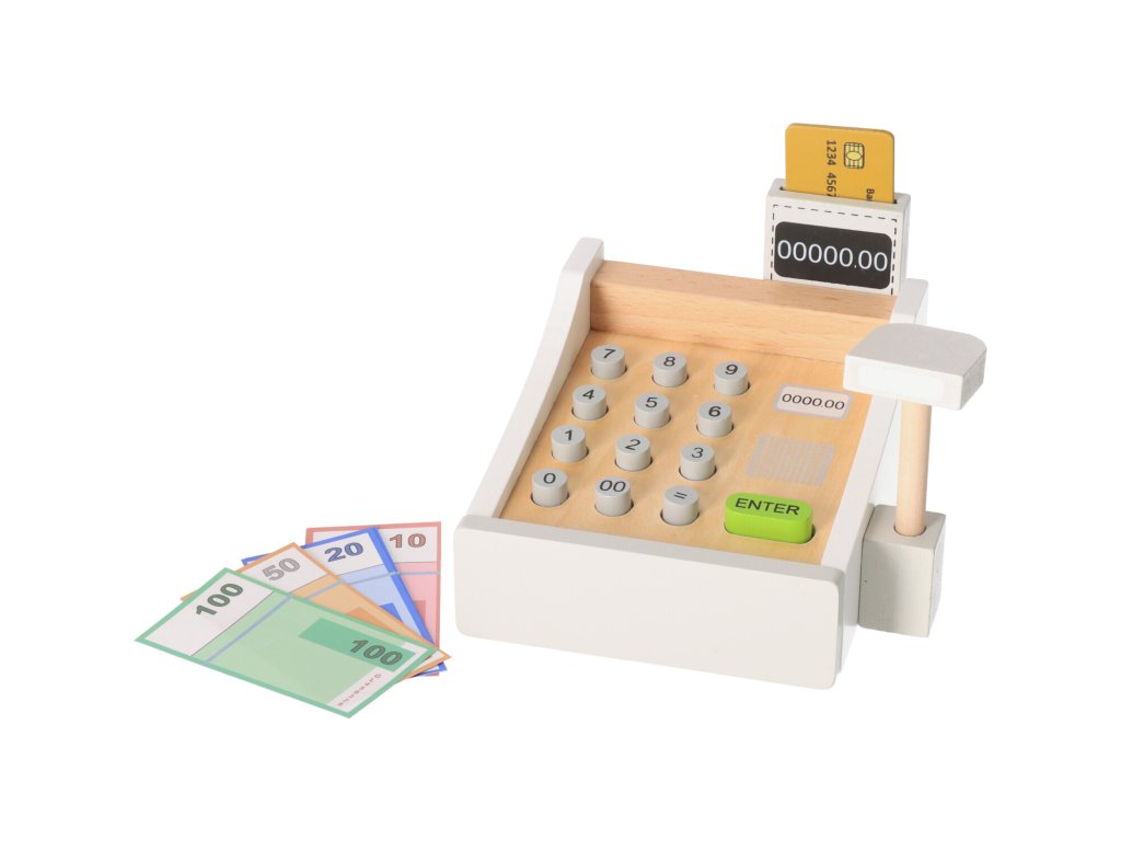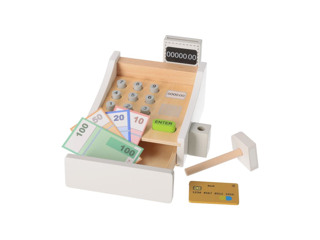 Eine moderne Holzkasse gehört in jeden gut sortierten Kinderladen.