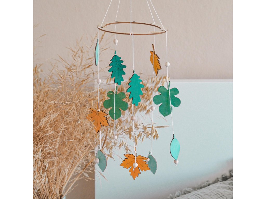 Der Ring aus Birkensperrholz eignet sich für die Herstellung eines Traumfängers oder eines Glockenspiels. Die Mitte des Traumfängers kann mit Häkelspitze, einfachem Strick oder mit der Makramee-Technik verziert werden.