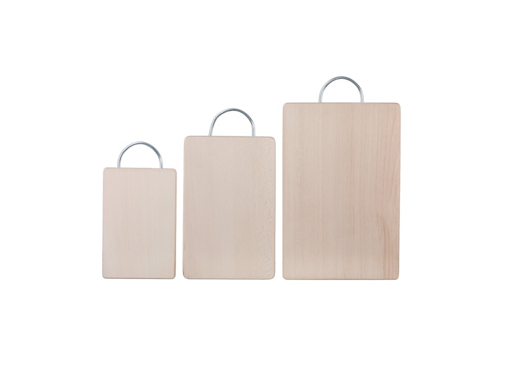 Die Abmessungen der Bretter sind: 18 x 12 cm, 23 x 14 cm und 29 x 18 cm.