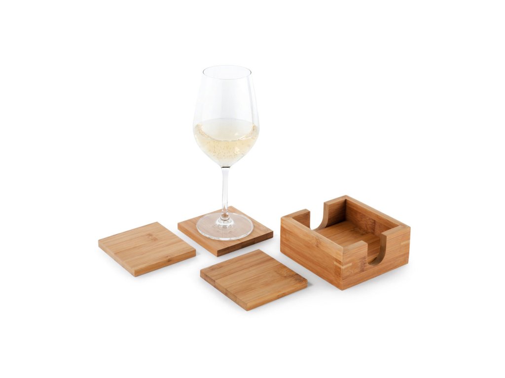 Das Set aus vier Untersetzern hat eine dekorative und praktische Funktion zugleich. Es findet seine Verwendung in jeder modernen Küche, im Esszimmer, im Wohnzimmer oder in der Bar. Hergestellt aus 100 % natürlichem Bambus.
