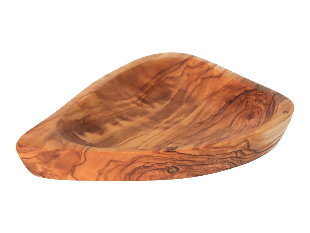 Stilvolle Holzschale aus einem Stück Olivenholz in natürlicher Ausführung. Ideal für kleine Früchte, Süßigkeiten, Nüsse, usw.