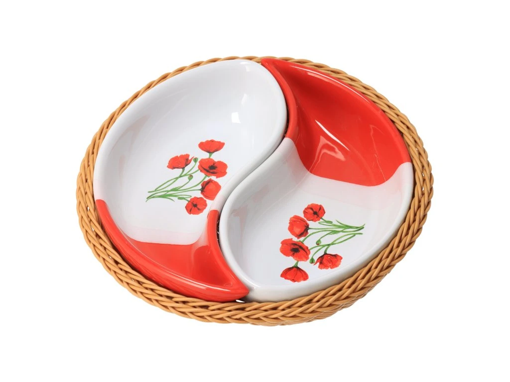 Schalen im Korb RED POPPY – 2er Set