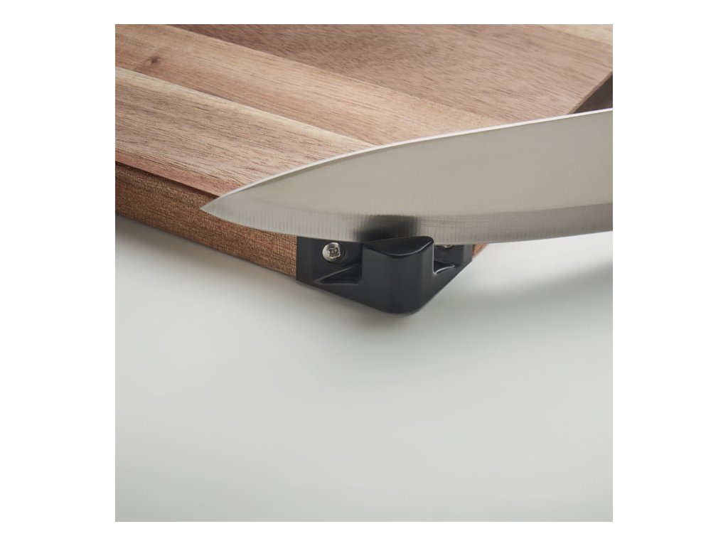 Schneidebrett aus Akazienholz mit Messerschärfer 25 x 18 cm