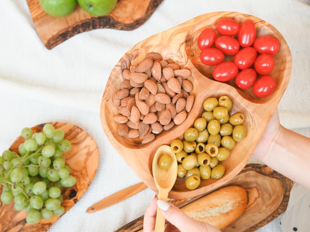 Eine Tüte Nüsse und kleine Früchte passen bequem in die Schale.
