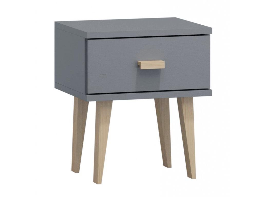 Der Nachttisch ist mit einem ungiftigen grauen Lack lackiert und die Beine aus Kiefernholz sorgen für perfekte Stabilität. Diese Farbkombination ist zeitlos und passt zu den meisten Einrichtungen.