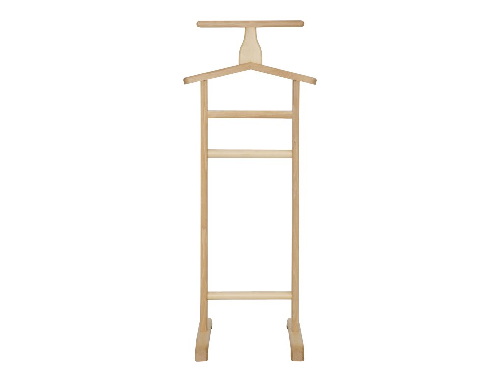 Der stumme Diener ist aus Buchenholz gefertigt und mit gesundheitlich unbedenklichem Lack behandelt. Die Breite des Bügels des stummen Dieners beträgt 45 cm und die Breite des unteren Teils 35 cm.