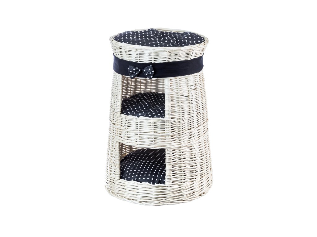 Tierbett aus Weide mit Hütte zweistöckig weiß – gefüttert