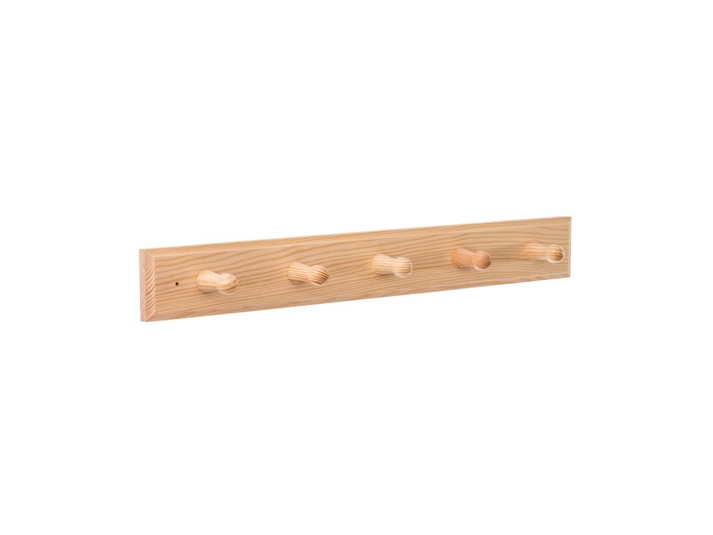 Das Holz, aus dem die Garderobe besteht, ist unbehandelt, so dass Sie es nach Belieben streichen und an die übrige Einrichtung anpassen können. Der Abstand zwischen den Haken beträgt 7,5 cm.