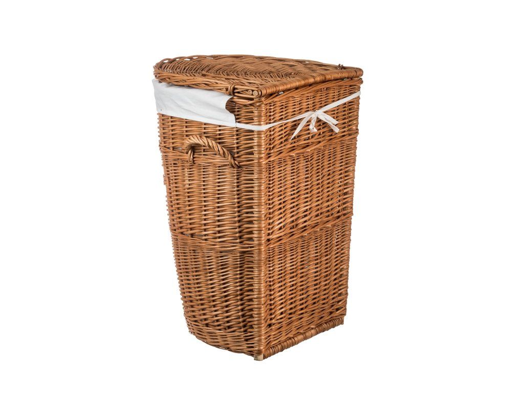 Dieser Wäschekorb ist aus hochwertigen Weidenruten handgeflochten und bietet dank seiner Abmessungen Platz für einen wirklich großen Haufen Schmutzwäsche.