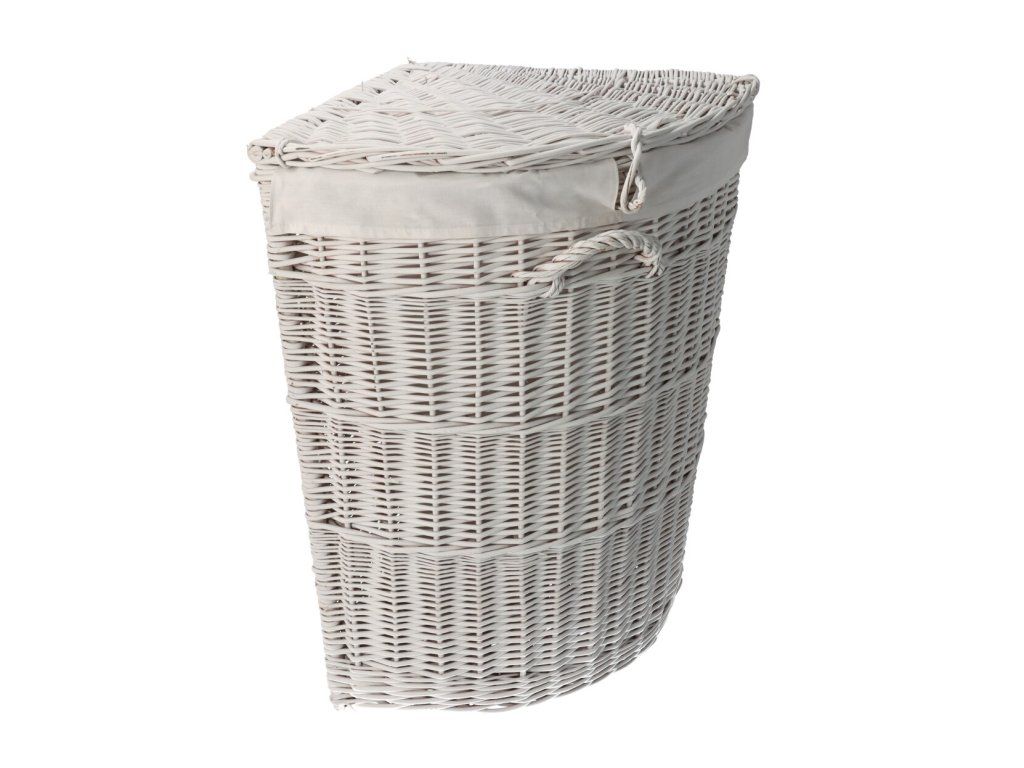 Wäschekorb aus Weide weiß Eckkorb gefüttert