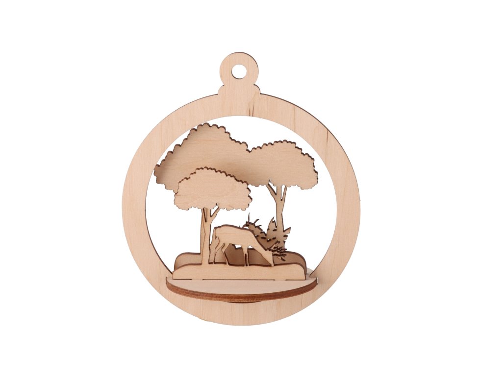 Die hölzerne Weihnachtskugel mit Naturmotiv wird Ihr Zuhause beduften und eine schöne Dekoration am Weihnachtsbaum und im Innenraum sein. Sie können sie in ihrem natürlichen Zustand belassen, aber Sie können sie auch z. B. mit Acrylfarben verzieren.