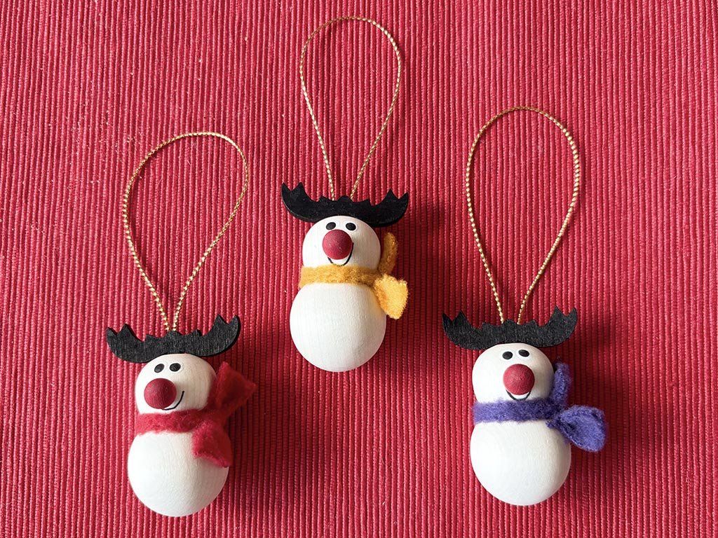 Natürliche Dekorationen und der Duft von Holz gehören zu Weihnachten. Die kleine Weihnachts-Rentierfigur macht sich gut am Weihnachtsbaum, Adventskranz, aber auch an einem Zweig in einer Vase.