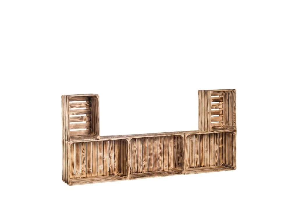 Wohnwand aus geflammten Holzkisten 79 x 180 x 24 cm